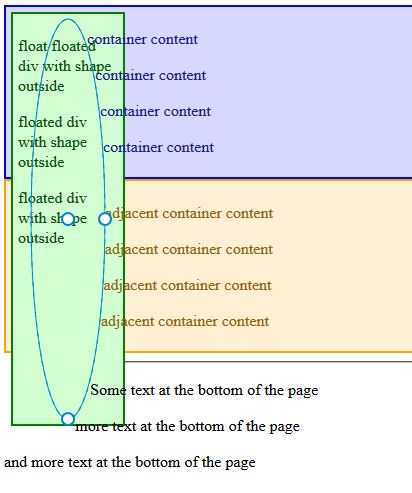 The clipped portion of your shape, i.e. the part that exceeds the container it’s floated in can’t be stacked below other elements. And this can be a bit of a surprise. As text in subsequent elements even outside the container of your floated element may wrap around your shape-area. Here is a demo to demonstrate. For further reading it’s worth reading up on w3.org.